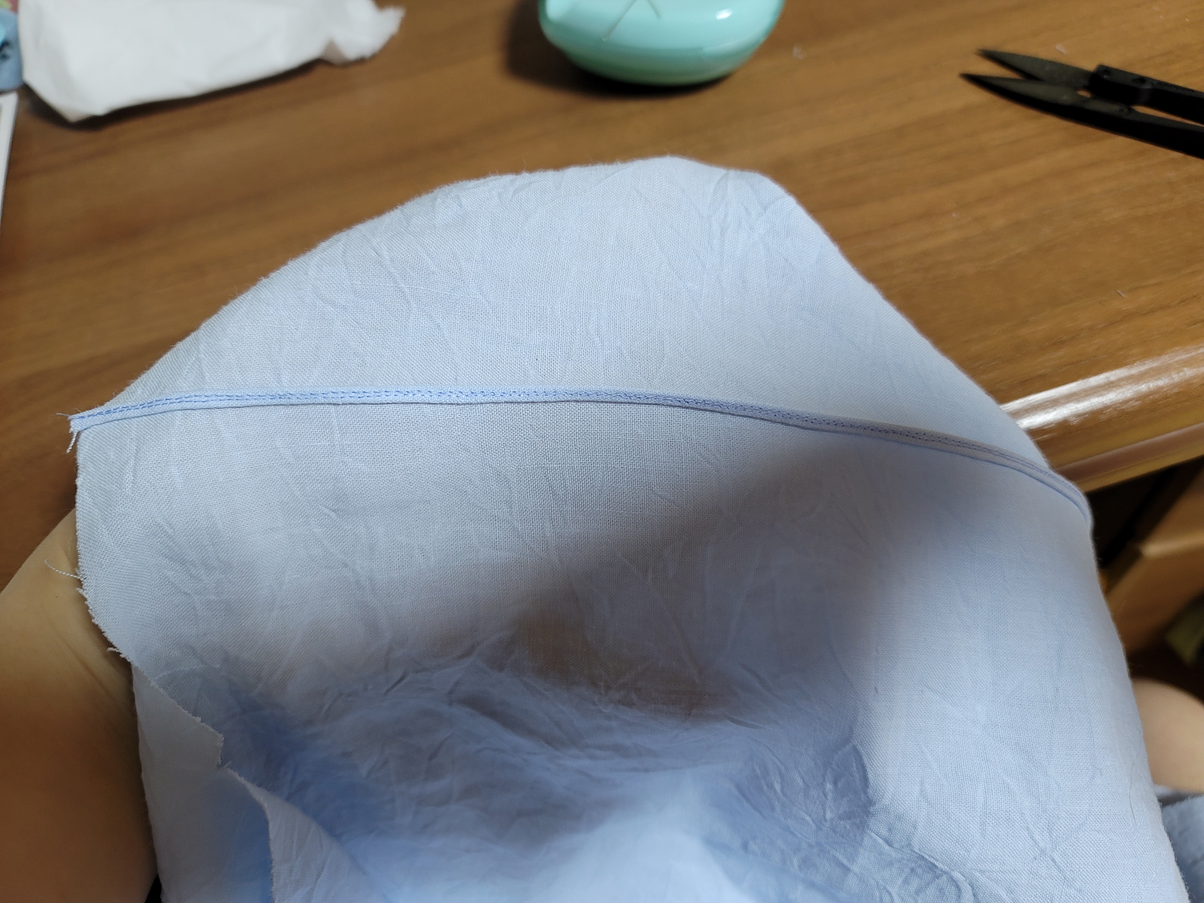 곱솔 바느질이라 접고 접으므로 겨드랑이 부분은 자연스럽게 곡선이 됩니다.
