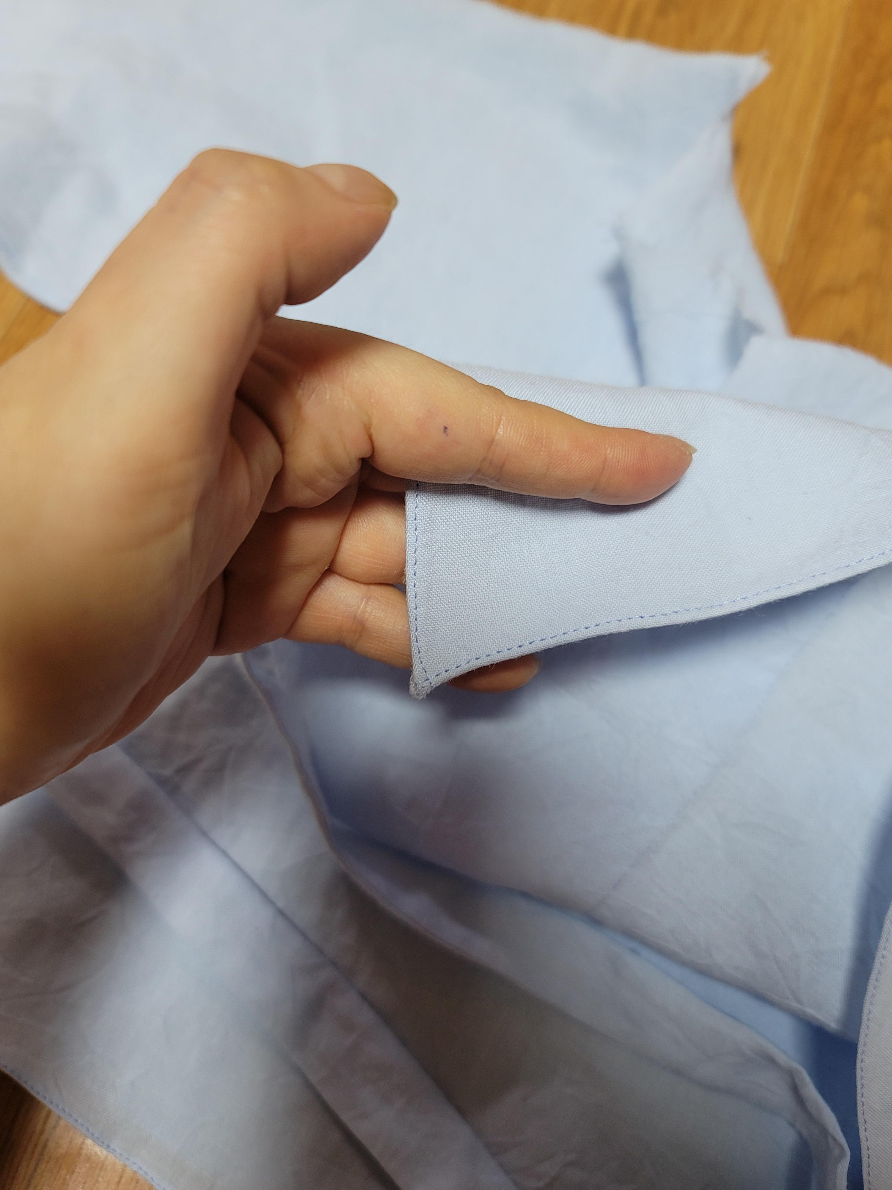 깃을 보시면 시접이 양쪽 다 접혔어요.