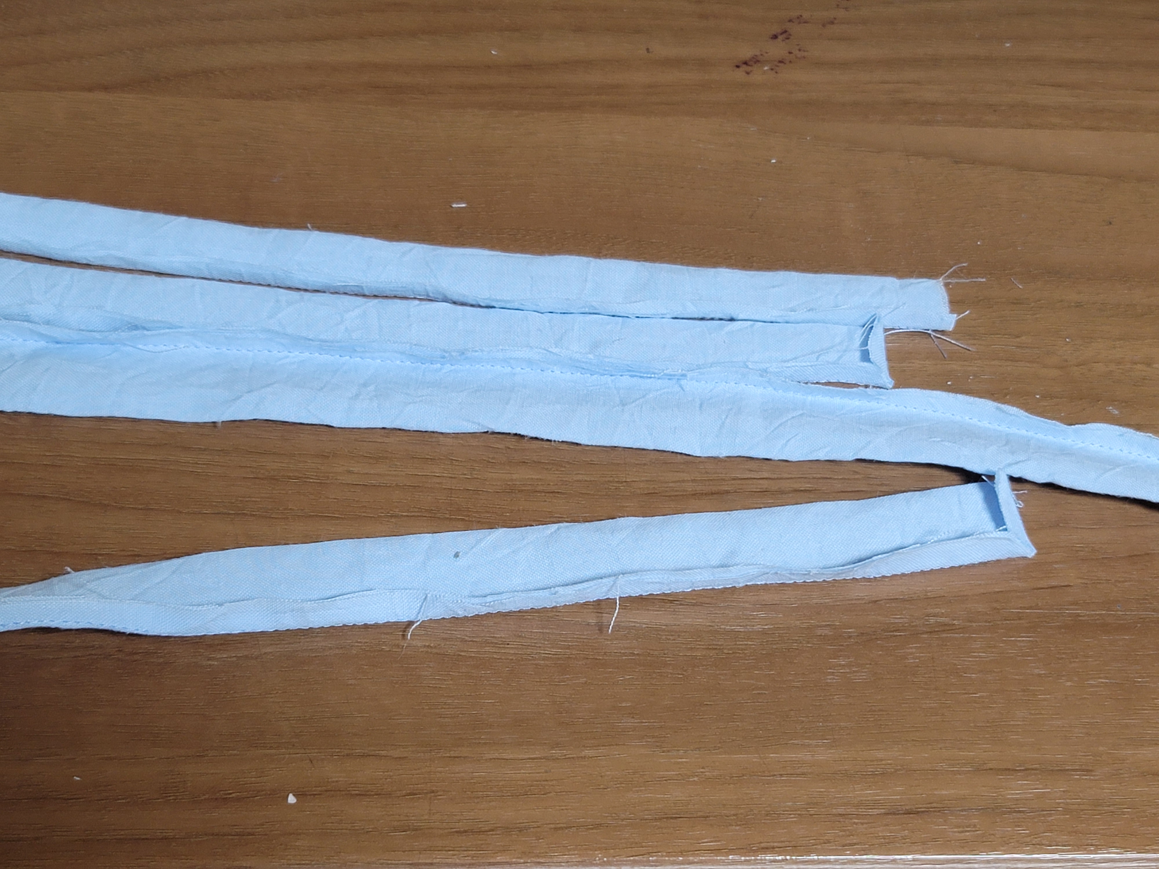 시접을 잘라내고 박음질부분을 접어서 다림질.
