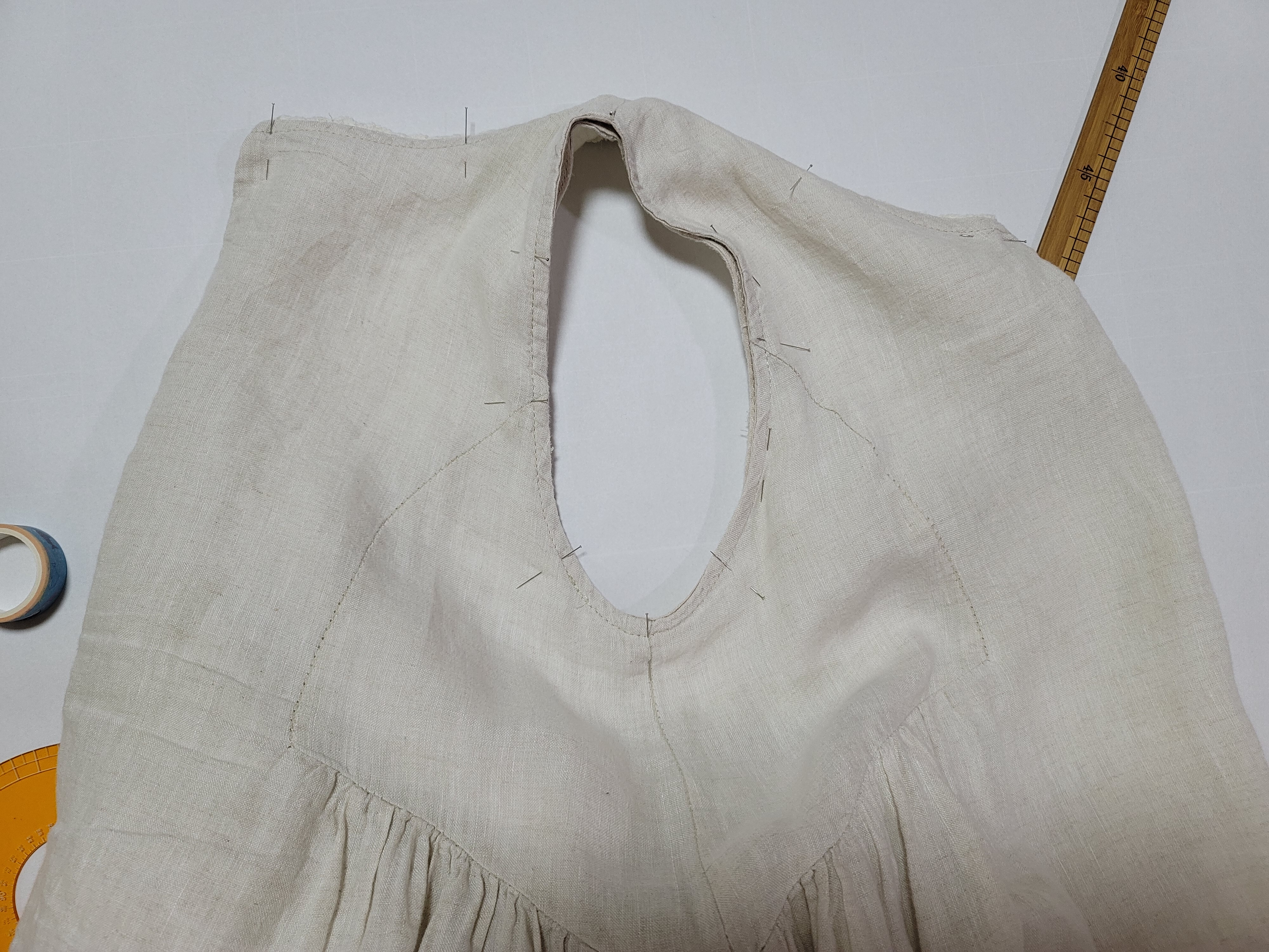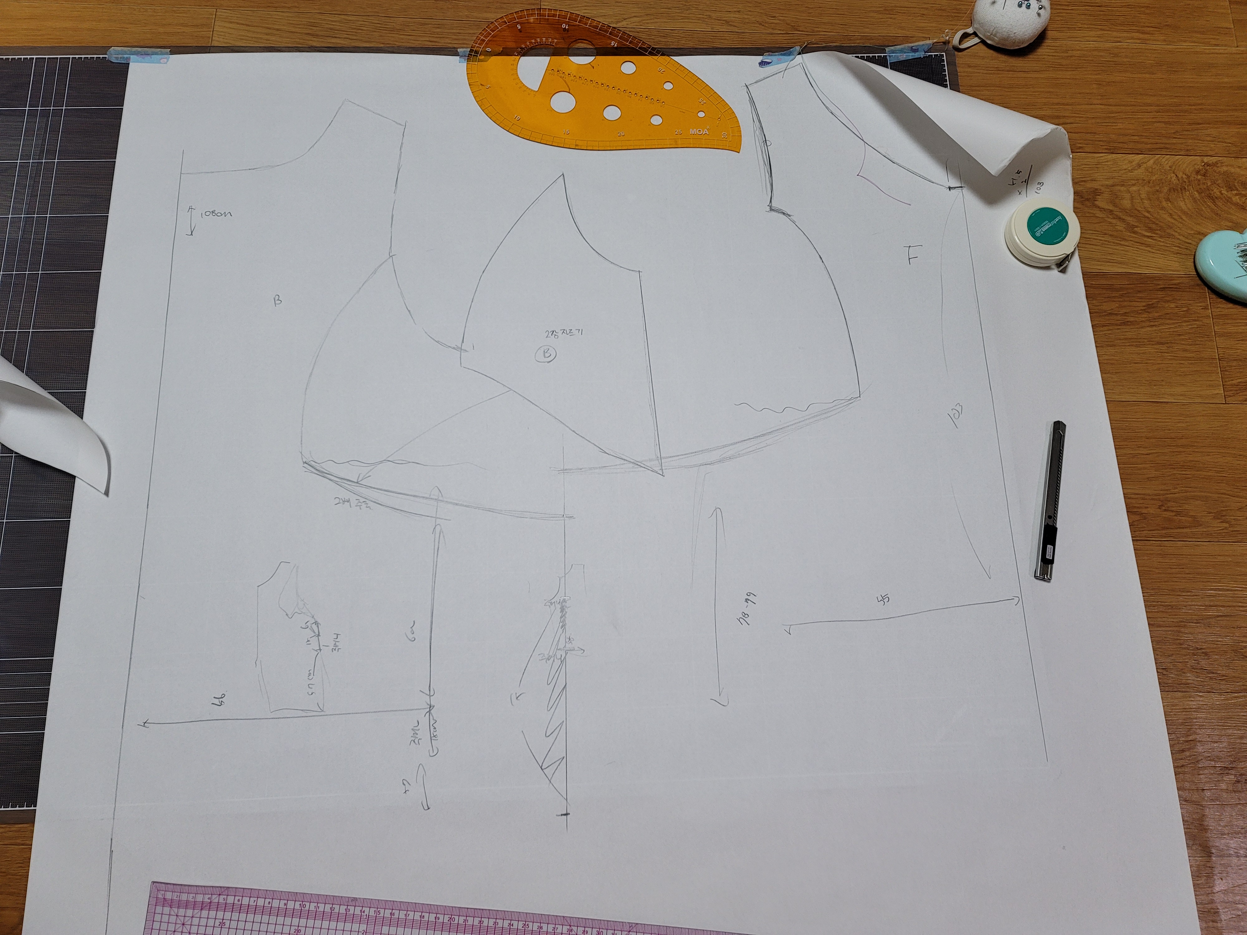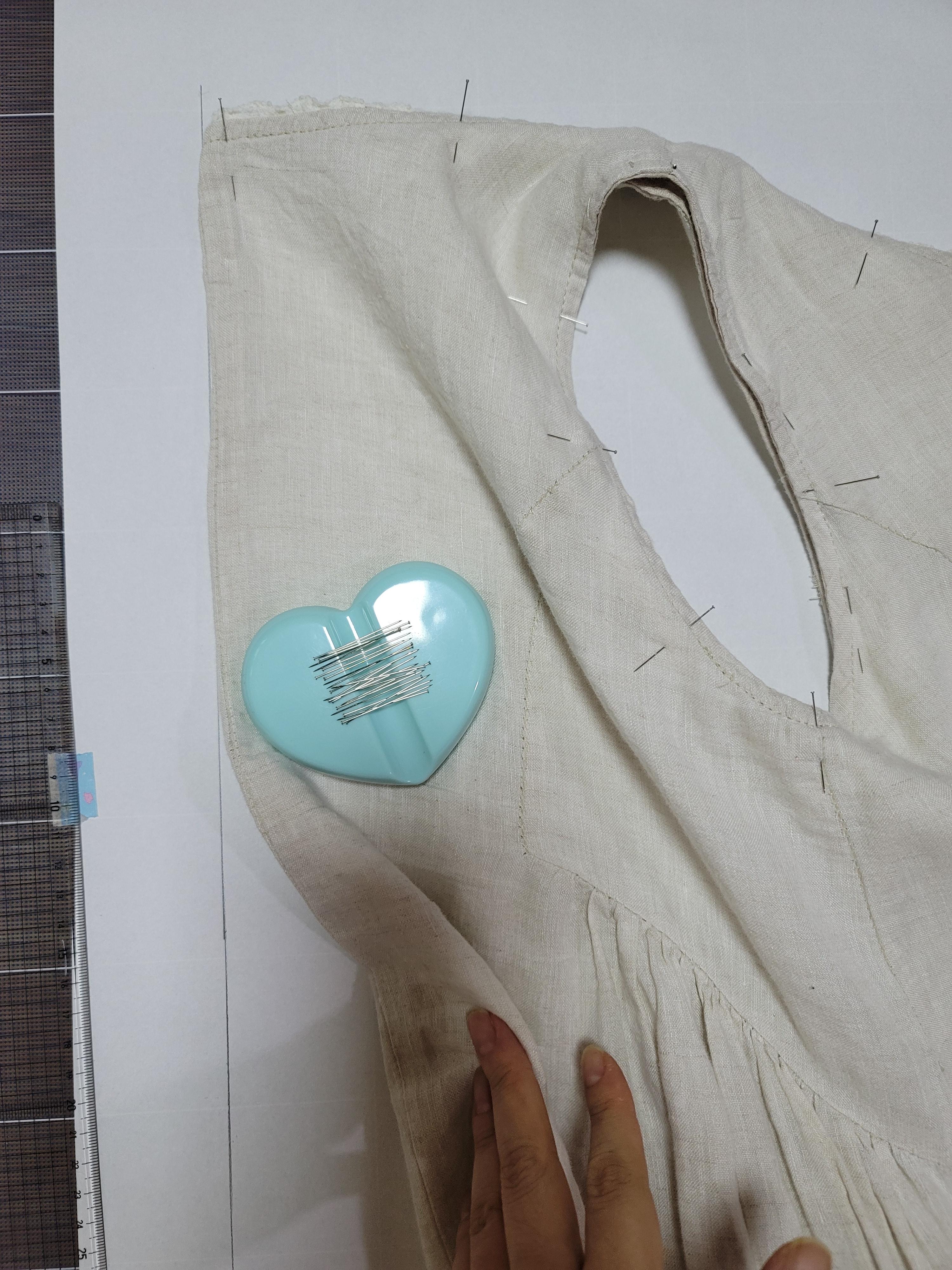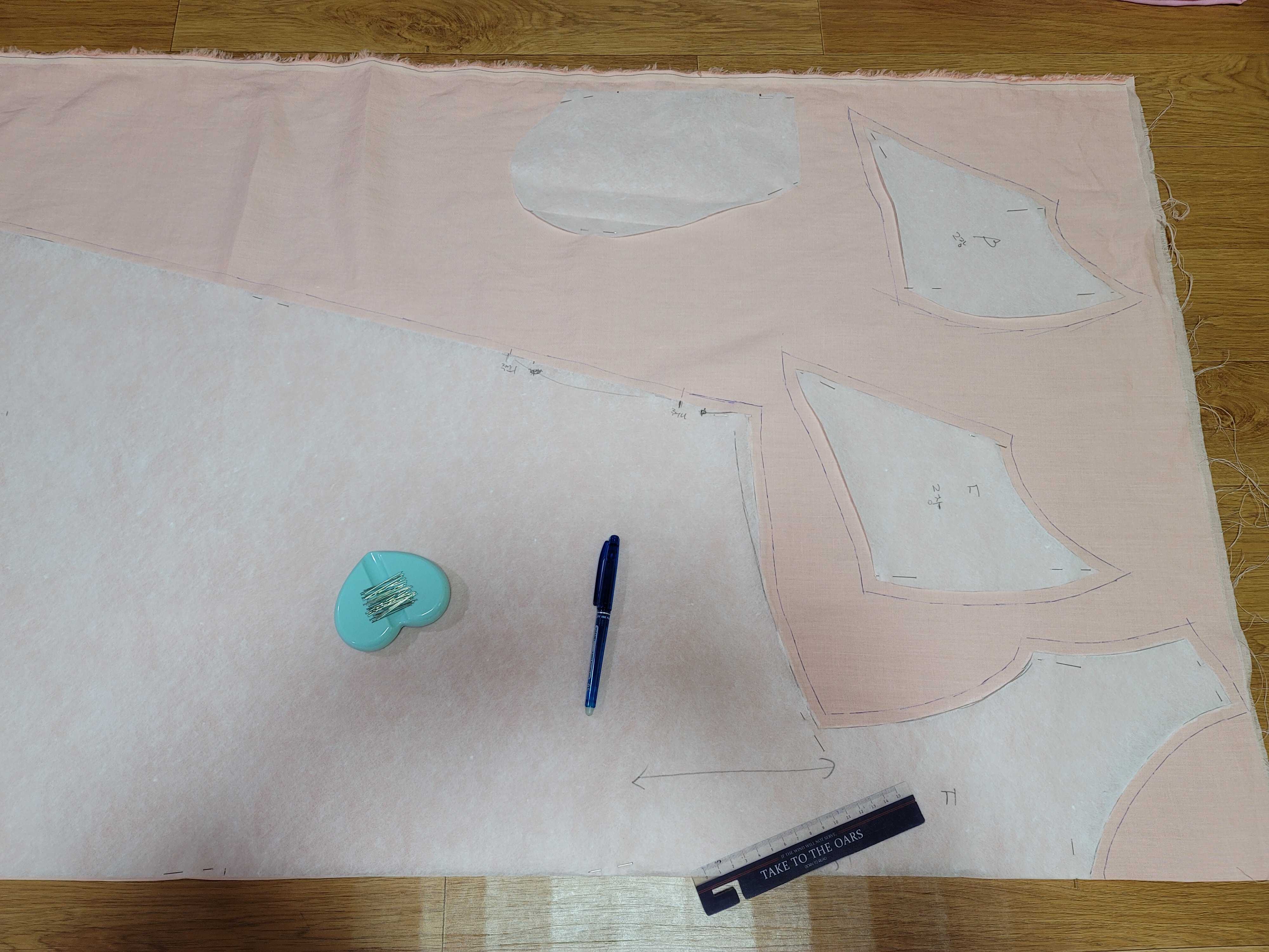 위의 사진은 겨드랑이 부분 패턴을 따로 옮기는 과정이에요.