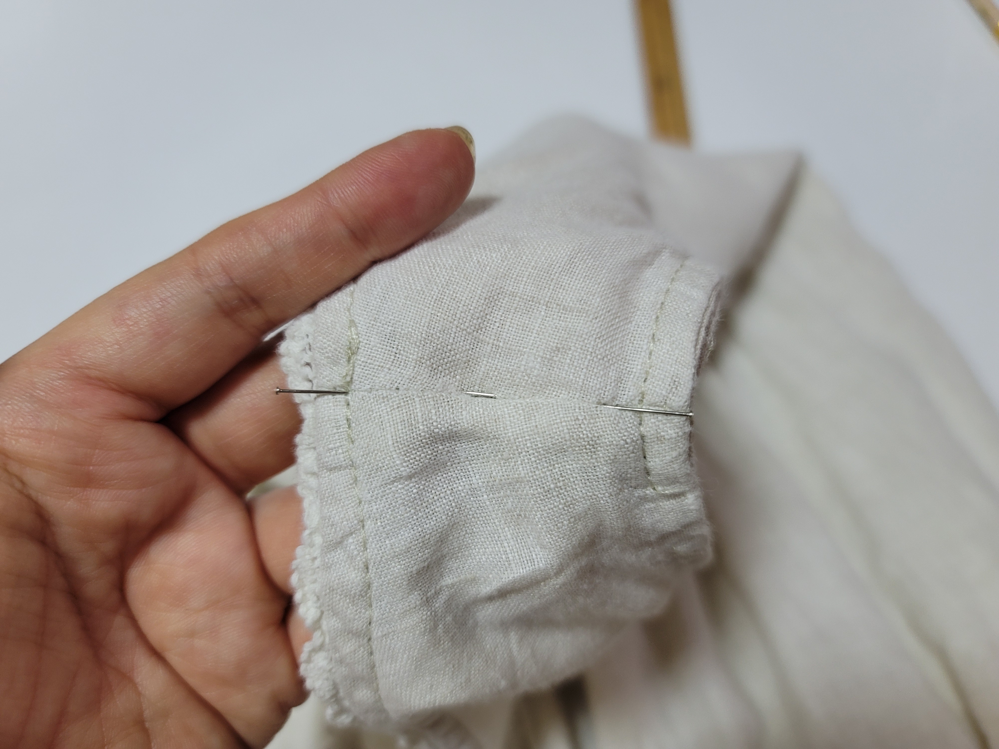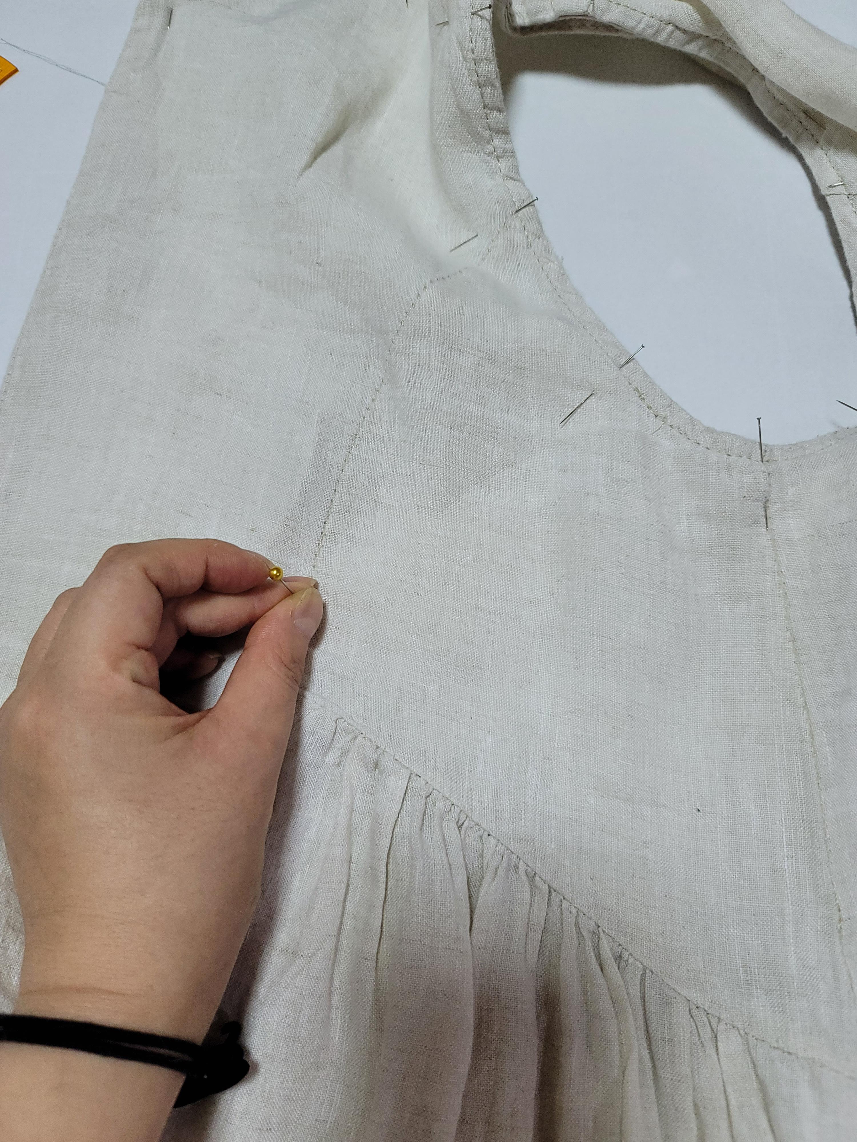 머리가 굵은 시침핀을 사용하면 편합니다.