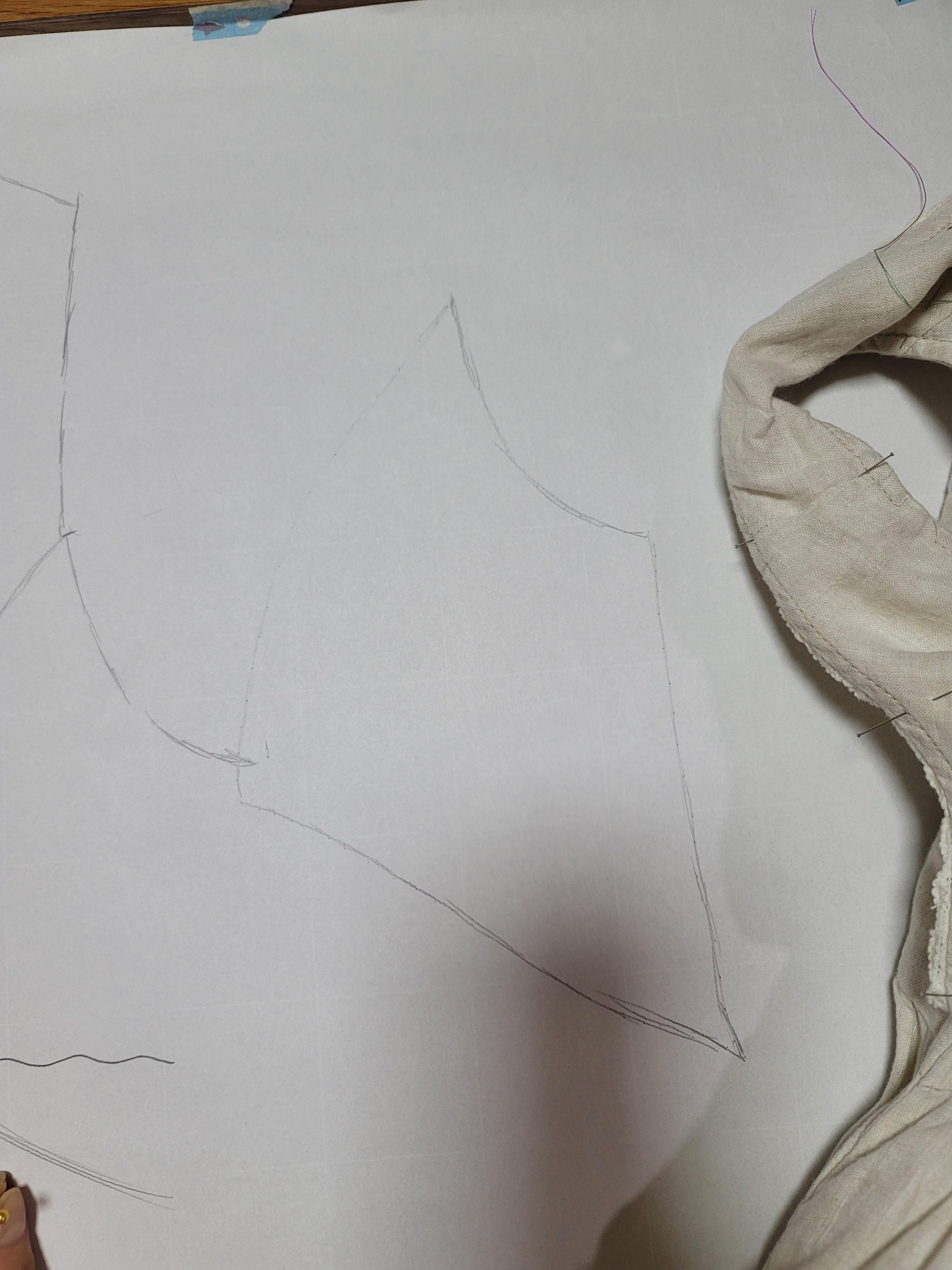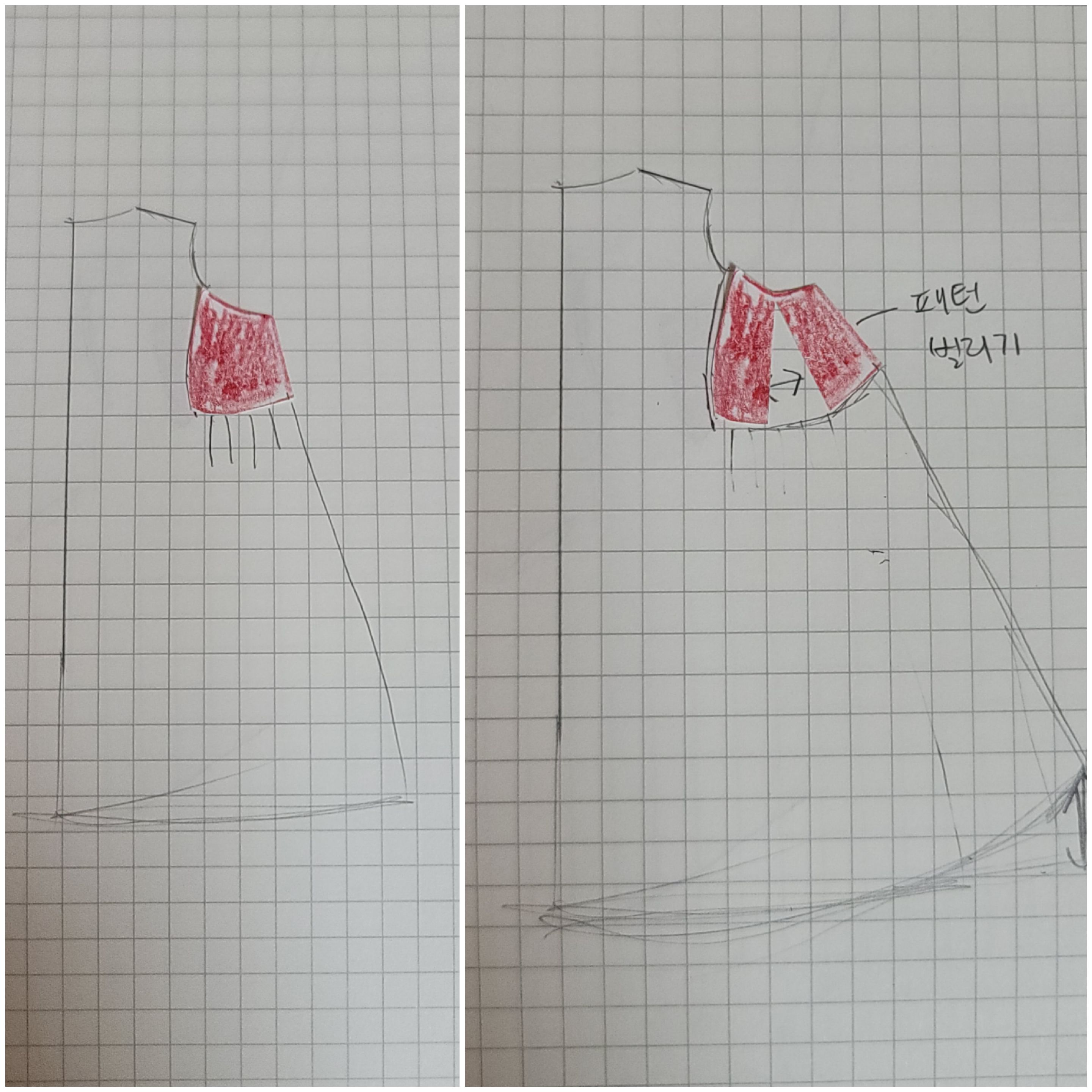 패턴지를 위처럼 절개해서 다시 그렸고요.