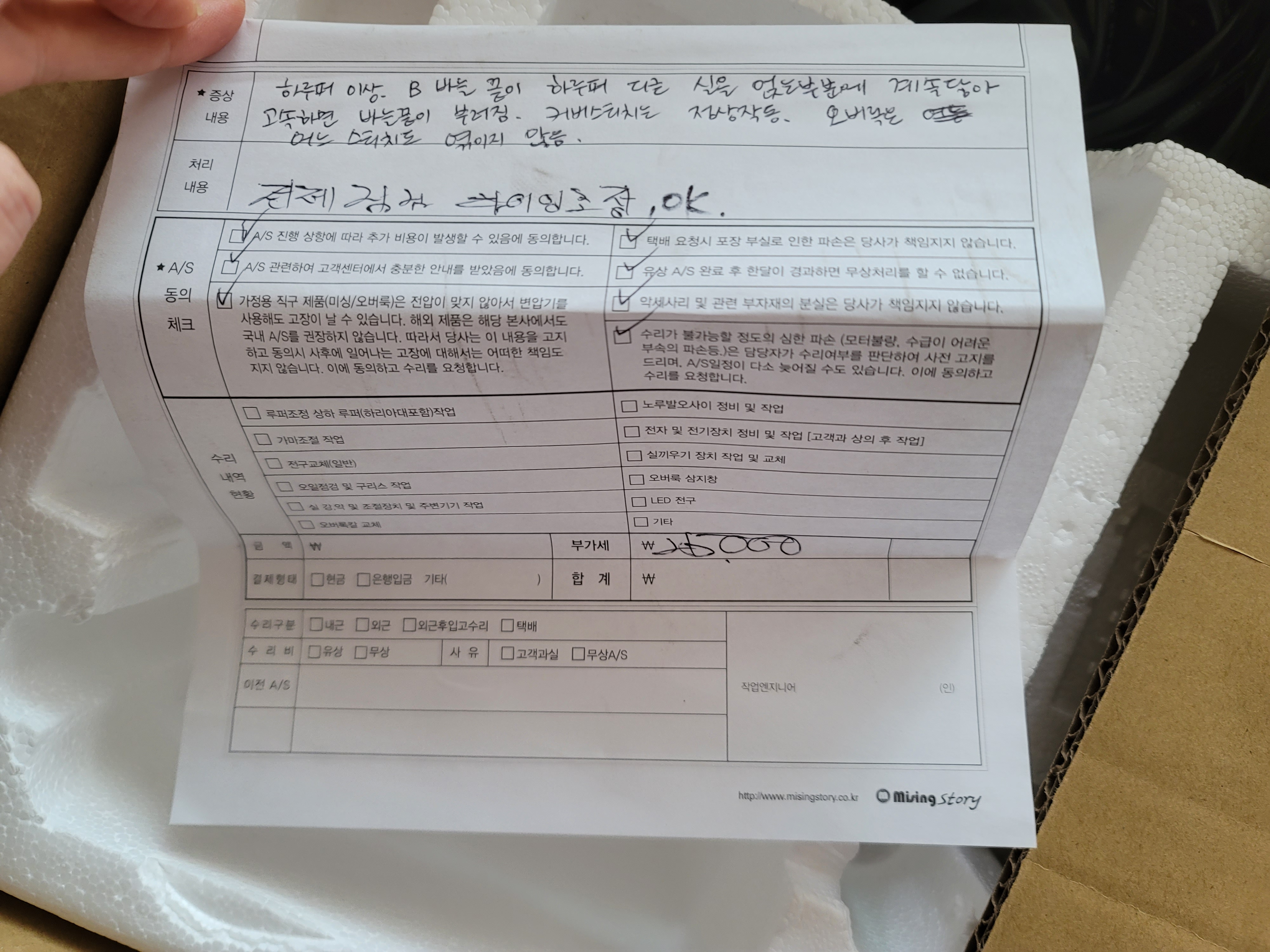 비록 A/S가 밀려서 도착 후 점검 완료까지